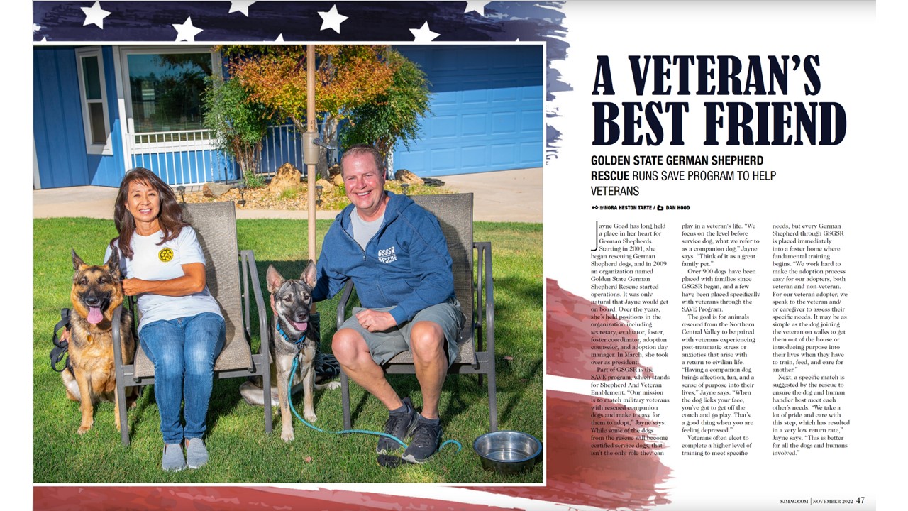 The Shepherd And Veteran Enablement (SAVE) program is dedicated to enhancing the lives of veterans by pairing them with loyal German Shepherd companions. Our mission is to provide therapeutic support and companionship to those who have served our country, fostering healing and a renewed sense of purpose. We match military Veterans with rescued Companion dogs and make it easy for them to adopt. We are enhancing the lives of military veterans and their families while saving more shelter dogs in search of homes.